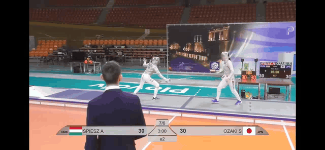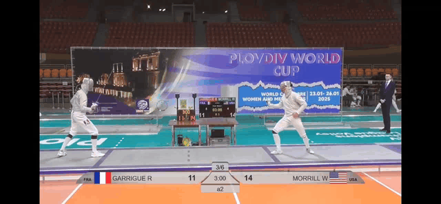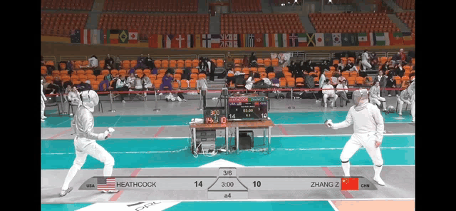 A fencer executes an attack in preparation by stepping into the box, letting the opponent close distance, and finishing the attack before the opponent does. This action works best against an opponent who rushes forward. Here are some examples of successful attacks in preparation: